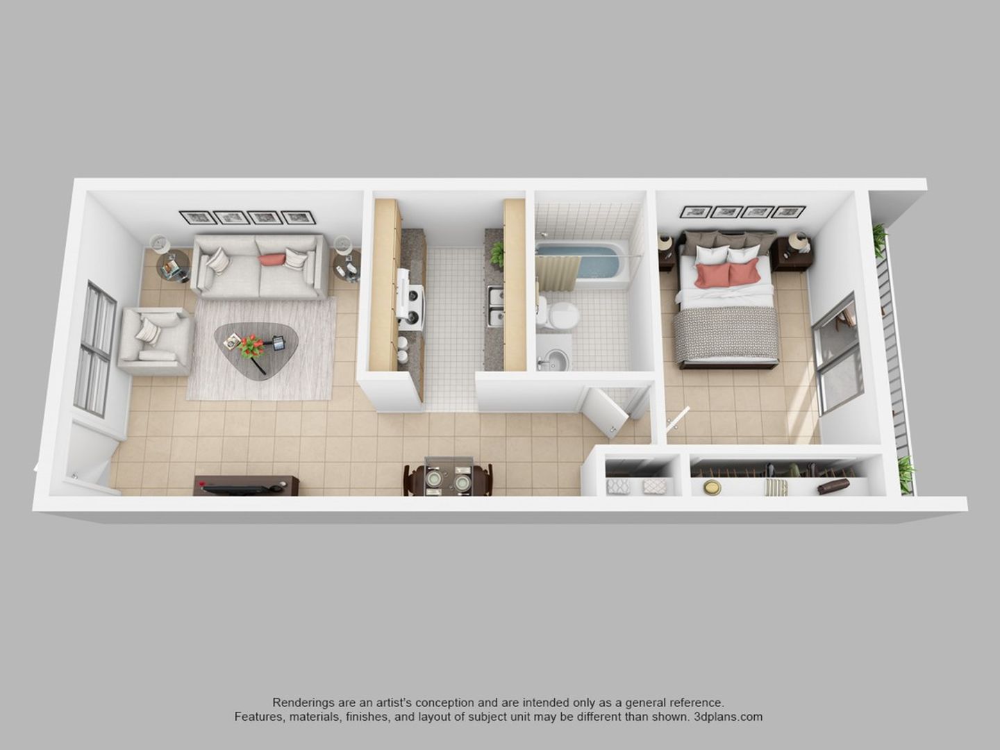 Spacious waterfront 1/1 apartment in Miami, FL.